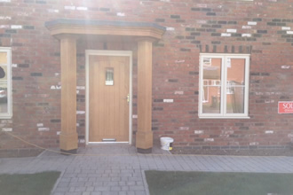 A selection of porches on the ongoing St Johns site in Lincoln. This group of porches are made from Green Oak and European Oak finished in Danish Oil.