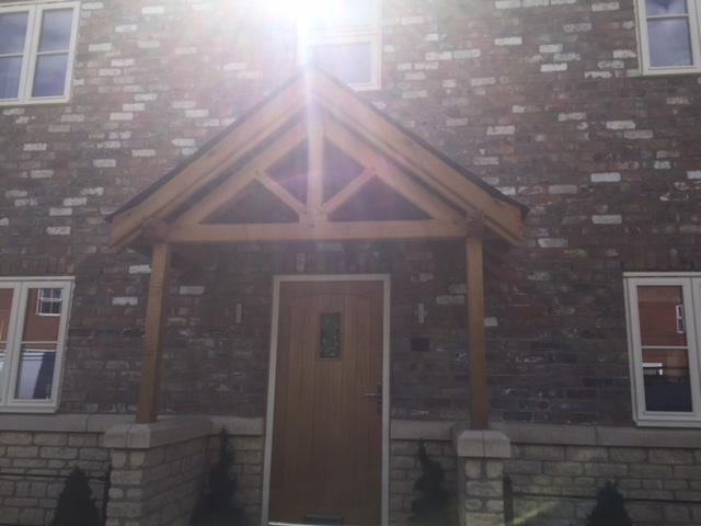 A selection of porches on the ongoing St Johns site in Lincoln. This group of porches are made from Green Oak and European Oak finished in Danish Oil.